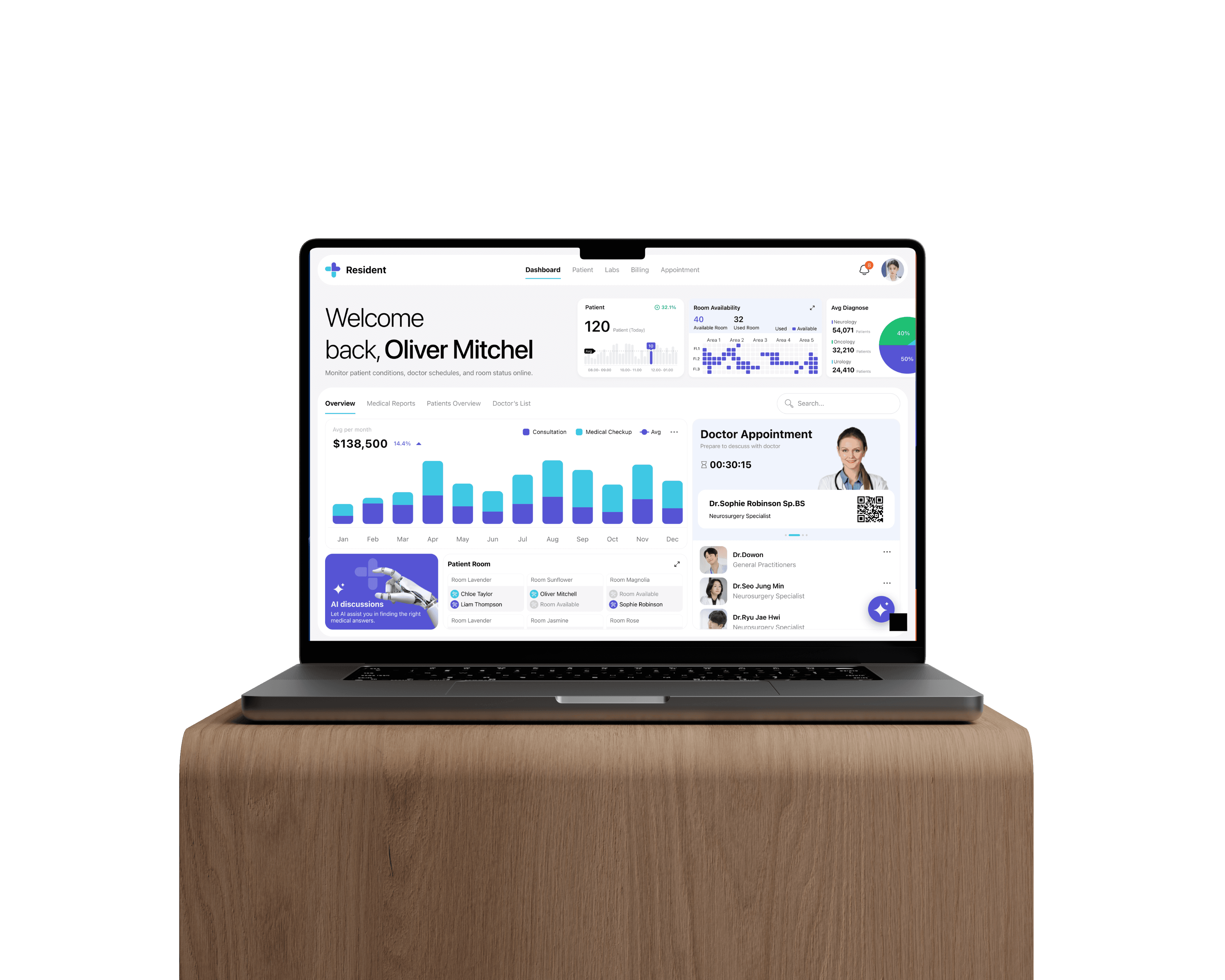 A hospital operations platform designed to manage and centralize data for patients, doctors, and residents.